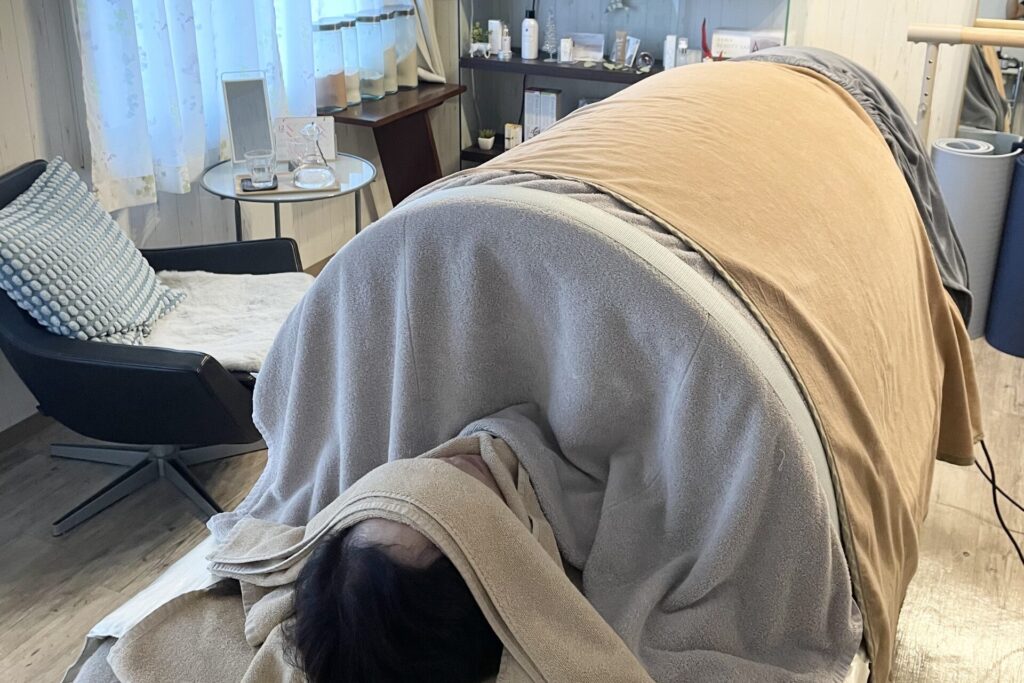 フェイシャル施術の場合、施術中ずっと入っていただけます。